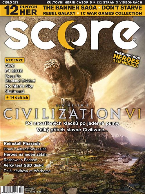 A co v časáku? Čeká vás tam několik parádních recenzí na hity jako Deus Ex: Mankind Divided, Abzu, No Man’s Sky, Starbound nebo F1 2016. Navíc si přečtete test SSD disků, velký zoom o šesté Civilizaci, retro články o hrách jako Pharaoh, Heroes of the Might & Magic nebo Driverovi a samozřejmě celou řadu zajímavých témat a článků. SCORE 271 je v prodeji, koupíte ho v každé solidní grafice!