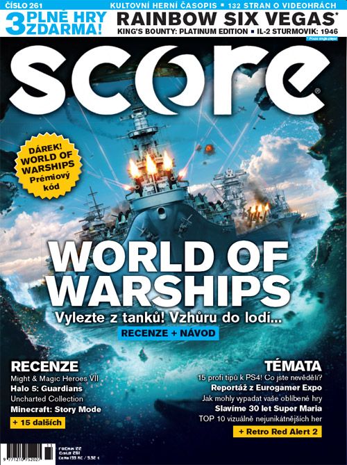 A co v časáku? Kromě hutné recenze World of Warships jsme na tuhle výjimečnou hru rovnou připravili i rozsáhlý návod, který by vám měl značně usnadnit vaše první kroky. Vedle toho si přečtěte recenze na Heroes VII, Minecraft: Story Mode či Halo 5 (a 16 dalších) a potěšíme vás určitě i solidní nadílkou tematických článků a už tradičními rubrikami, kdy ve SCORE najdete třeba i vzpomínku na Red Alert 2, Zoom na The Witness, Co-op o pátém Metal Gear Solidu nebo zbrusu novou rubriku Dohra, ve které jsme se ještě jednou zaměřili na SOMU.