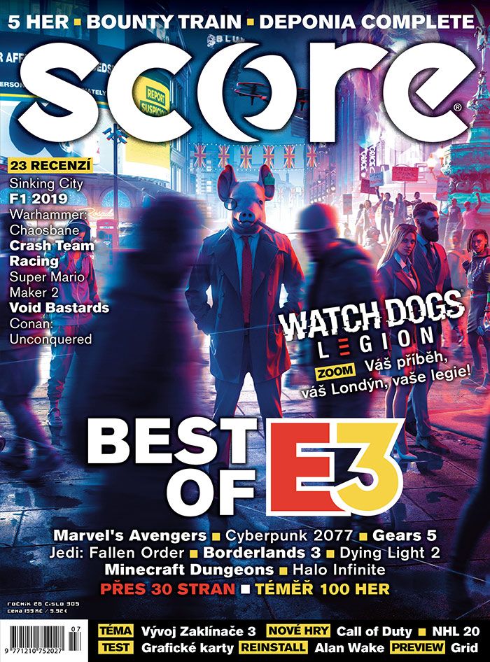 Máme tu tradiční nabušené E3 číslo. A v něm bezmála čtyřicet stran o nejnovějších a nejočekávanějších hitech tohoto roku a i toho dalšího. Na obálce vás sleduje prasečí hlava a uvnitř najdete velký zoom na snad až překvapivě slibně vypadající třetí díl Watch Dogs. Vedle toho desítky dalších her, které nás zaujaly ve větších nebo malých článcích. Celkově vám SCORE 305 i tentokrát přináší osvědčené čtení na 132 stranách a kromě zajímavých témat a článků o připravovaných hrách jsme se jako každý měsíc hlavně snažili recenzovat novinky. Co konkrétně v 305ce najdete?