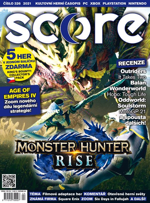 Ve SCORE 326 si přečtete recenze na Monster Hunter Rise, Outriders, It Takes Two, Hobo: Tough Life nebo Oddworld: Soulstorm. V Zoomu.jsme se zaměřili na velmi očekávaný Age of Empires IV a taky na realistickou válečnou hru Six Days in Fallujah.