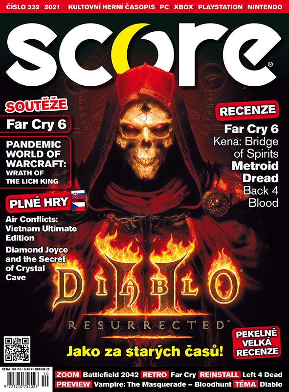 Ve SCORE 332 si přečtete dvanáctistránkovou recenzi na Diablo II: Resurrected, a kromě toho taky Far Cry 6, Metroid Dread, Back 4 Blood, Kena: Bridge of Spirits, FIFA 22, NHL 22, Alan Wake Remastered, The Dark Pictures Anthology: House of Ashes a mnoho dalších.